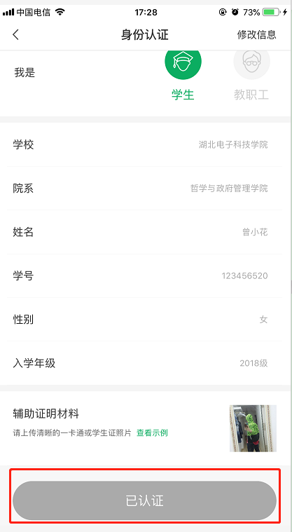 认证结果