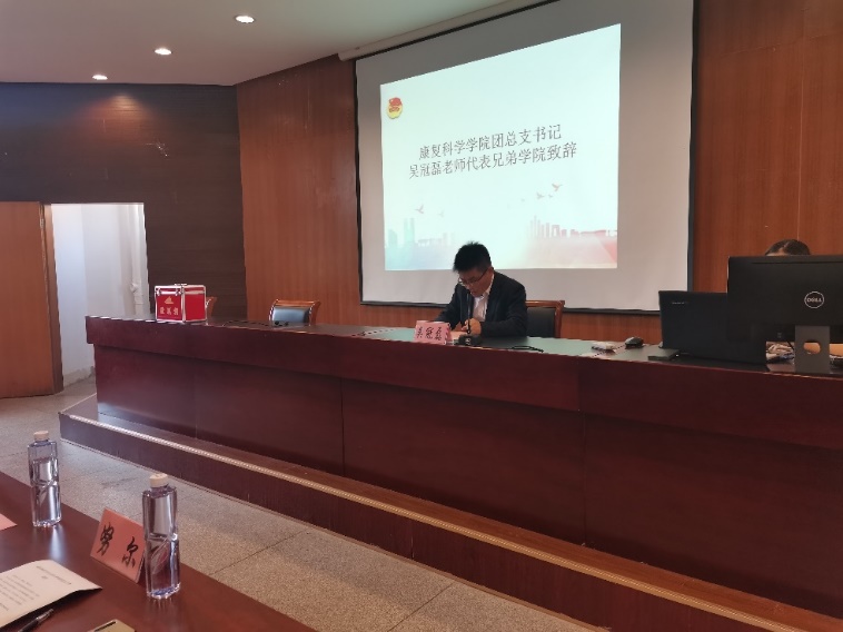 康复科学学院团总支书记吴冠磊老师代表兄弟学院致辞,表达了对我院学生会组织工作的美好祝愿,并希望学院之间加强交流合作,互相帮助,资源共享,共同发展。校学生会及各院学生会代表以视频的方式纷纷向beat365唯一官方网站首届学生会的成立致以衷心的祝愿。