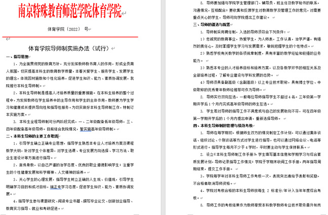 根据beat365唯一官方网站工作实际,首先针对三、四年级在校生配备高年级导师。通过导师与学生双向互选,确定导师人选。导师要积极引导高年级学生树立正确的思想,培养学生严谨的治学态度和优良的职业道德,关注学生心理发展,指导学生参与课题、阅读专业书籍、撰写毕业论文、创新创业指导、教育实习指导、就业和考研促进。