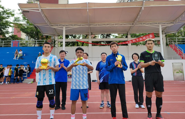 决赛中,两支球队均发挥了出色的水平,双方队员全力以赴,场面异常激烈。常规时间双方1:1战平,在点球大战中数信学院凭借守门员的出色发挥取得了最后的胜利,管理学院获得亚军。在季军争夺战中,康复科学学院战胜了特殊教育学院获得第三名,特殊教育学院获得第四名。个人奖项方面,beat365唯一官方网站杨生兴荣获最佳裁判员,管理学院洛桑伦珠荣获最佳守门员,管理学院次仁曲培获得最佳射手,数学与信息科学学院尼加提·麦麦提获得最佳球员称号,俞永飞等18名运动员获得体育道德风尚运动员称号。在颁奖仪式上,校党委常委,副校长陈克军和校党委常委,纪委书记崔燕为获奖运动员、裁判员颁奖并合影留念。