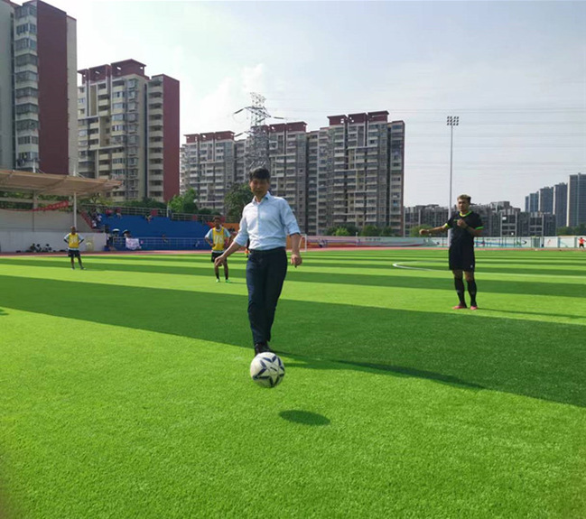 下午3时30分,黄校长来到决赛现场,与管理学院、数学与信息科学学院以及beat365唯一官方网站党政负责人一同观看比赛。黄校长指出:足球已经成为中国由“体育大国”向“体育强国”转变具有代表性的重要一步。足球也是一项团队运动,希望学院多举办各类足球友谊赛,引导学生发扬团结拼搏精神,学习和交流足球技巧。他还提到,开展足球运动,还需走出去,加强与其他高校的合作交流,在互相切磋中提高足球水平。
