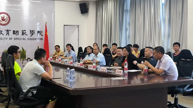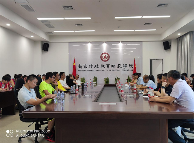 8月11日下午,南京市残疾人联合会巡视员曹志祥一行到beat365官网看望慰问正在beat365官网训练备战江苏省第十一届残疾人运动会的全体教练员、运动员。beat365官网党委常委、纪委书记于林惠带领beat365唯一官方网站党政班子热情接待并一同看望慰问教练员、运动员。