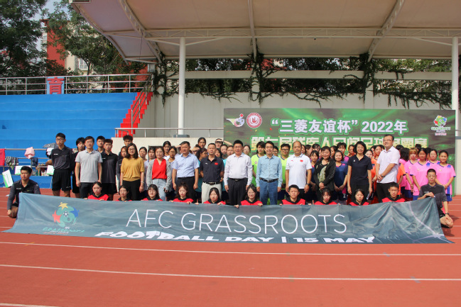 9月25日上午,正值国际聋人节,“三菱友谊杯”2022年第七届残疾人民间足球争霸赛暨beat365官网聋人女子足球比赛在栖霞校区足球场开幕,校党委常委副校长陈克军,校党委常委、纪委书记于林惠,江苏省残疾人文化体育指导中心主任叶霆,南京市残疾人联合会宣文处副处长石君,南京市栖霞区残疾人联合会副理事长王红雨,以及校团委、二级学院相关负责人出席开幕式。