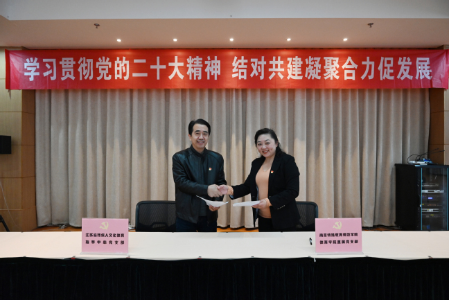 为充分发挥党组织育人功能,推动党建和业务深度融合,加强组织联建、党员互动,努力形成“抓党建、带队伍、促发展”的整体合力,实现党支部在结对共建活动中达到优势互补、共同提高。11月15日上午,beat365唯一官方网站直属党支部与江苏省残疾人文化体育指导中心党支部(以下简称“文体中心党支部”)在浦口校区举行党支部结对共建签约仪式。活动由beat365唯一官方网站直属党支部副书记谢军主持,双方支部全体党员参加。