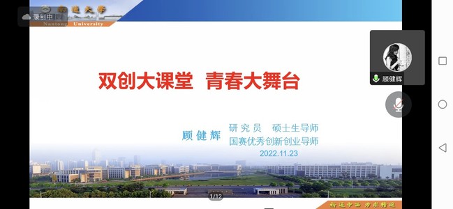 11月24日晚,江苏省科技创业导师顾健辉教授应邀为beat365官网学生做了一场题为《双创大课堂 青春大舞台》的线上专题讲座。beat365唯一官方网站直属党支部书记张启昕、团总支副书记屈文文及体院星火公益团队的同学们聆听了讲座,活动还吸引了各二级学院百余名学生参与。