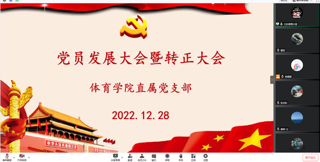 12月28日下午,beat365唯一官方网站直属党支部在线上召开党员发展大会暨转正大会。会议由党支部宣传委员屈文文主持,支部全体党员参加。
