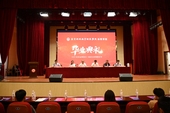 毕业典礼结束后,2023年毕业晚会在热烈的欢呼声和掌声中拉开了帷幕。晚会以“青春•梦想•绽放”为主题,节目丰富、形式多样。传统体育展示《太极》《棍法》展示了体育学子过硬的专业素养;舞蹈《书简》,手持书简、古装水袖随鼓点飞掷,不尽远古之风;合唱《一起向未来》展示了新一代体育青年良好的青春面貌;歌曲《凤凰花开的路口》《海阔天空》《祝你一路顺风》蕴涵了离别是师生间浓浓的情谊。让2023届毕业生在南京特师的点滴光阴和青春回忆汇聚成心头的阵阵暖流,也让晚会在歌声中圆满落下了帷幕。