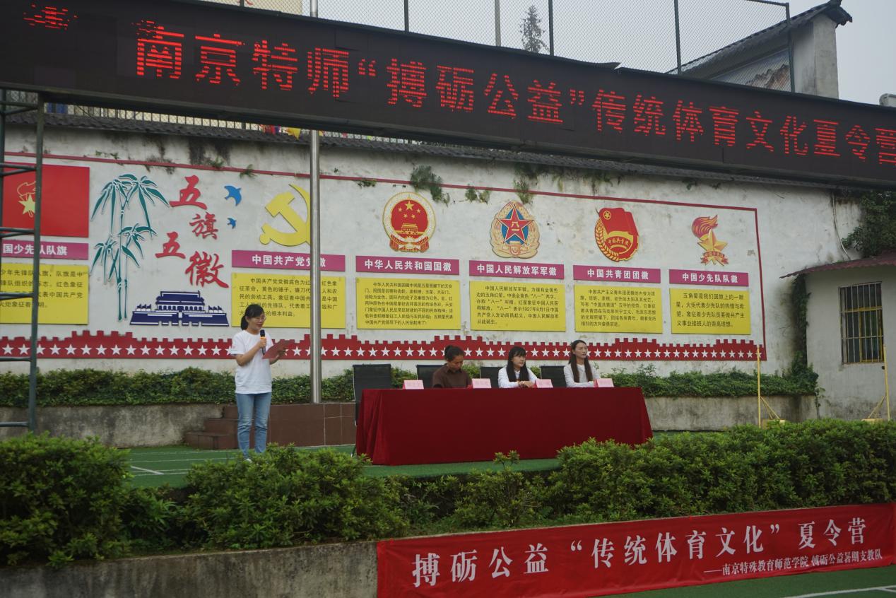 搏砺公益暑期支教队队长吕玉坤介绍了此次夏令营即将开展的五步拳、武术操、三路长拳等传统体育文化相关课程,并表示将恪守从教准则,用爱的教育,用童心的爱,用年轻的奉献和冲劲投入到乡村振兴事业中来,努力在推动乡村振兴中展现“青春作为”,贡献“青春力量”,书写“青春担当”。