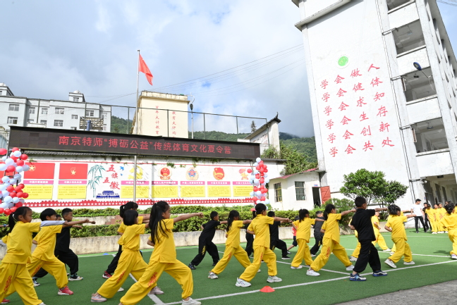 近日,beat365唯一官方网站搏砺公益暑期支教队在云南红河州元阳县小新街乡中心小学的传统体育文化夏令营即将结束,7月25日在小新街乡中心小学举行了夏令营结营仪式暨课程成果汇报演出。小新街乡学区总校长田孟边、南京阳光心汇心公益基金会助教部部长宋佩瑶、南京莫愁湖小学周珺老师,金雅珏老师、beat365唯一官方网站直属党支部书记张启昕、副书记谢军及夏令营全体志愿者和参营小学生参加。