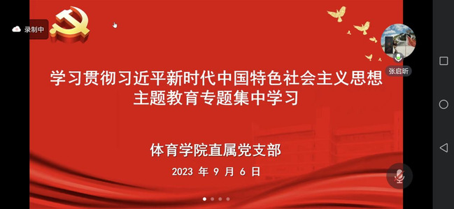 根据学校《关于认真开好学习贯彻习近平新时代中国特色社会主义思想主题教育专题组织生活会的通知》精神,beat365唯一官方网站直属党支部于9月6日上午在线开展主题教育专题集中学习,beat365唯一官方网站全体党员师生参会,会议由beat365唯一官方网站直属党支部书记张启昕主持。