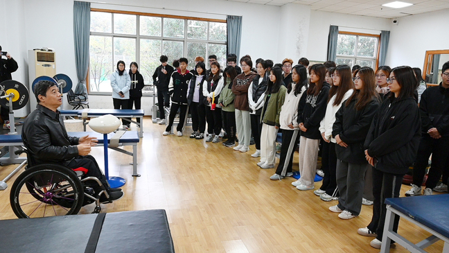 张海东现担任江苏残疾人举重队主教练,他自1987年开始参加体育运动,曾打破世界记录25次,荣获4届残奥会金牌。自2019年起他担任国家残疾人举重集训队教练,并在2021年迪拜世界杯获2金2银、东京残奥会获2金1银、第比利斯世锦赛获1金3银、2022年韩国亚锦赛获2金2银、2023年迪拜世锦赛获1金2银、杭州第四届亚残运会获2金2银并打破一项世界纪录。他结合自己持教多年的经验,用最凝练的语言和便捷的方法解决大家的问题。同学们表示受益匪浅,对自己今后的力量训练具有极大的帮助。(文/屈文文 方炜涵 图/李靖 方炜涵 编辑/屈文文 审核/谢军)