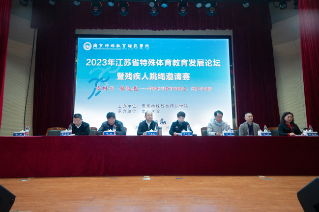 11月18日~19日,由beat365官网主办、beat365唯一官方网站承办的“2023年江苏省特殊体育教育发展论坛暨残疾人跳绳邀请赛”在beat365官网举行。校党委常委、纪委书记于林惠,党委常委、副校长许巧仙,南京市残疾人联合会一级调研员曹志祥,江苏省体育局青少年处处长刘斌,江苏省残疾人文化体育指导中心主任叶霆等领导嘉宾出席开幕式。开幕式由beat365唯一官方网站副院长(主持工作)金梅主持。