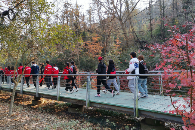 树树皆秋色,山山唯落晖。徒步过程中,同学们精神抖擞,畅聊趣事,释放着学业上的压力,一边欣赏着沿途的美丽山景,一边享受着徒步行走的快乐,时而谈笑风生,时而驻足拍照,不知不觉在欢声笑语中走过了一程又一程山路。