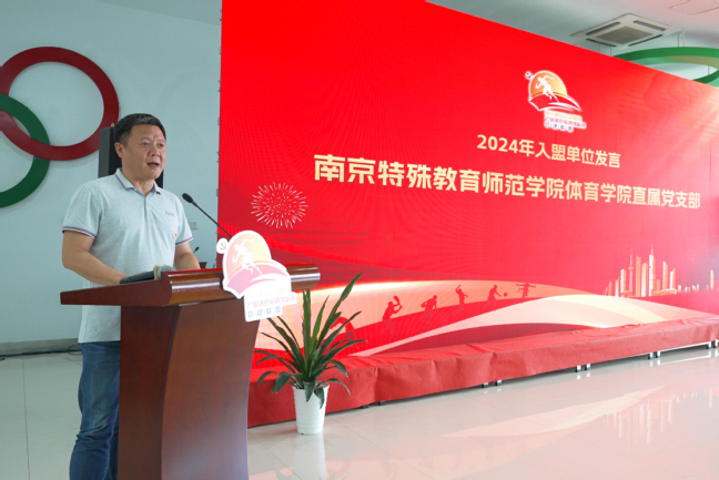 beat365唯一官方网站beat365唯一官方网站直属党支部受邀参会,并作为新入盟单位代表发言。陶刚书记首先谈到联盟“高品质”的兴业精神和高校“高品位”的办学思想不谋而合,促成了学院与党建联盟的结缘;其次指出南京特师beat365唯一官方网站可以从推动体育健康品牌的发展、特色党建活动的打造、残疾人体育活动的开展,残疾人体育器材研发及理论研究等各方面的提供全方位的合作。陶刚书记希望通过加入联盟打破过去的“小朋友圈”,共同搭建合作多赢的“大舞台”,实现资源共享,有力推动党建与产业的真正融合,实现党建与事业发展的同频共振。以实际行动践行体育强国、健康中国战略,在推动南京体育产业高质量发展的新征程上奋力谱写新篇章。