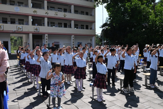 支教队队长梁一端介绍了此次夏令营即将开展的五步拳、武术操、三路长拳等传统体育文化相关课程,并表示将恪守从教准则,发扬“更高、更快、更强、更团结”的体育精神,用年轻的奉献和冲劲投入到乡村支教事业中。