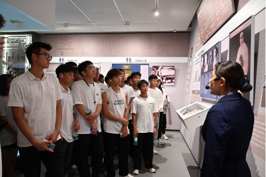 在讲解员的解说中,同学们了解到陶先生早年留学美国,回国后放弃高薪高位选择了在乡村推广平民教育,为农村孩子创造受教育的机会。他先后创办了晓庄学校、生活教育社、山海公学团、育才学校和社会大学,宣传“生活即教育”、“社会即学校”,提倡“教学做合一”及“小先生制”。