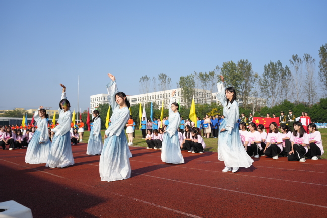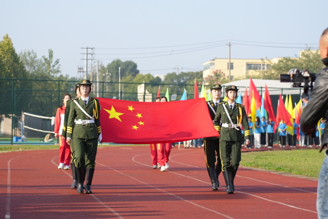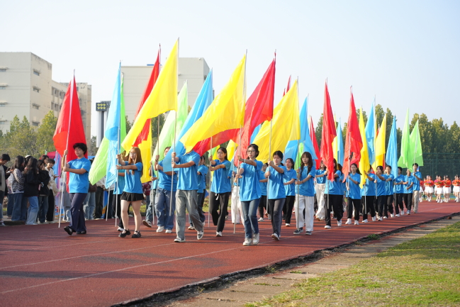 伴随着激昂的《运动员进行曲》,国旗队、彩旗队、鲜花队、裁判员方阵、各学院代表队迈着矫健的步伐依次走过主席台。各学院入场方阵的体育文化展演律动活跃,充满青春气息,也充分展现出南特学子积极向上的精神面貌。