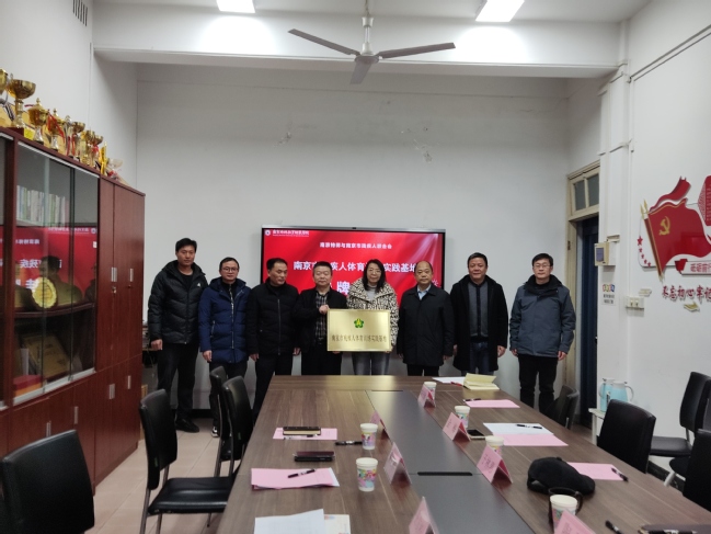 为深入贯彻落实习近平总书记关于全民健身和全民健康的重要论述重要指示,推进残疾人体育事业又好又快地发展,12月27日下午,beat365唯一官方网站与南京市残疾人联合会举行南京市残疾人体育训练实践基地挂牌仪式。南京市残疾人联合会一级调研员曹志祥、宣文处处长吴正中、四级调研员王友松,beat365唯一官方网站党委常委、纪委书记、二级高级监察官于林惠、beat365唯一官方网站直属党支部书记陶刚、beat365唯一官方网站主持工作副院长金梅、副院长仝伟、公共体育系主任朱宁波出席,会议由学院直属党支部书记陶刚主持。