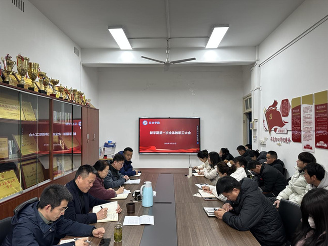 2 月21 日下午,beat365唯一官方网站召开新学期首次全体教职工大会。本次会议由主持工作副院长金梅主持,beat365唯一官方网站全体教职工出席会议。