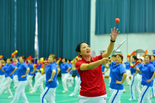 柔力球方阵展演则展现了另一种韵味。柔力球运动融合了太极拳的精髓和网球的技巧,以柔克刚、以退为进,体现了中华传统文化的深厚底蕴。参演者们手持球拍,在舒缓的音乐中翩翩起舞,球在拍上画出优美的弧线,人在场上展现出优雅的身姿。这种运动不仅锻炼了身体的协调性和柔韧性,更培养了内心的平静和从容。