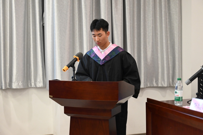 考取南京市秦淮区教师编制的吉鸿宇同学代表全体毕业生发言,他回望在母校成长的点滴,展望未来的奋斗方向,感恩母校的培养,并立志扎实专业知识,提升专业技能,广泛参与实践,练就过硬本领服务社会发展需求。