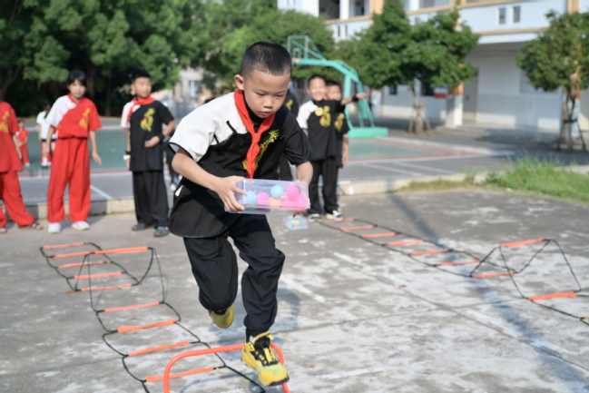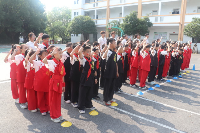 活动伊始,全体人员庄严肃立,举行升国旗唱国歌仪式。激昂的国歌奏响,孩子们目光坚定地注视着国旗缓缓升起,稚嫩的歌声中满是对祖国的热爱与敬意。随后,支教队员带领孩子们进行了热身,为接下来的活动做好准备。
