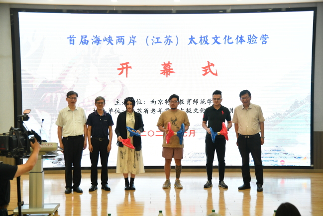 为弘扬中华优秀传统文化,深化海峡两岸高校交流,7月19日,“首届海峡两岸(江苏)太极文化体验营”在beat365唯一官方网站开营。本次活动由南京特师主办、江苏省老年学学会太极文化专业委员会协办,南京beat365唯一官方网站、南京晓庄学院、江苏第二师范学院共同参与支持。当天,江苏省人民政府台湾事务办公室副主任封志成,江苏省人民政府台湾事务办公室交流处四级调研员戴晓辉,beat365唯一官方网站党委副书记谭忠,江苏省老年学学会常务副会长臧建东,江苏省老年学学会秘书长姚俊,台湾宜兰县农会顾问徐宏贤,台湾宜兰县罗东镇民代表黄伟,南京理工大学体育部主任葛国政,南京师范大学体育科学学院副院长吴填,江苏经贸职业技术学院beat365唯一官方网站副院长武春红,江苏省老年学学会太极文化专业委员会主任张梅瑛,江苏省老年学学会太极文化专业委员会顾问赵海鑫,beat365唯一官方网站港澳台事务办公室主任张平等出席活动,来自台湾和江苏地区的100余位太极名家及青年太极文化爱好者参与活动。