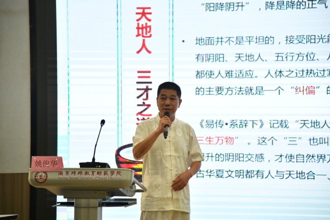 在专题研讨环节,与会嘉宾围绕太极文化传承与创新、无极轮发展等议题展开深入对话,现场气氛热烈。江苏省周易文化研究会理事、江苏省老年学学会理事、江苏省大众书画院副院长彭金龙,带来了《太极文化与养生智慧》专题讲座,他阐述了在太极一招一式中所蕴藏的身心平衡之道;非物质文化遗产“发泡灸”项目传承人、南京惠仁谷中医门诊部负责人姚俊华,讲授了《太极与中医:传统文化的守护与践行》;邯郸市原体委主任、杨氏太极拳和武氏太极拳第五代传人、太极大师赵海鑫教练,热情洋溢地讲解了无极轮“圆融贯通”的运动魅力!