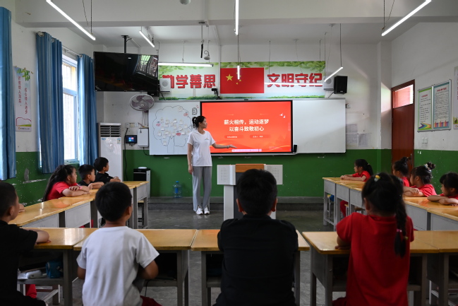 为让同学们更深刻理解体育精神与奋斗初心的联系,在趣味运动会开始前,李烨老师走进各班,主持了以“薪火相传,运动逐梦——以奋斗致敬初心”为主题的红色班会。课上,李烨老师结合全运会的发展历程,讲述了运动赛场上的红色故事——从老一辈运动员为国争光的拼搏,到当代健儿“更快、更高、更强、更团结”的追求,让同学们明白:体育不仅是竞技,更是精神的传承。“每一次奔跑,都是对梦想的追逐;每一次协作,都是对团结的践行。”李老师的话语让同学们深受触动,大家纷纷表示要在接下来的运动会中,用拼搏诠释奋斗,用协作传递精神。