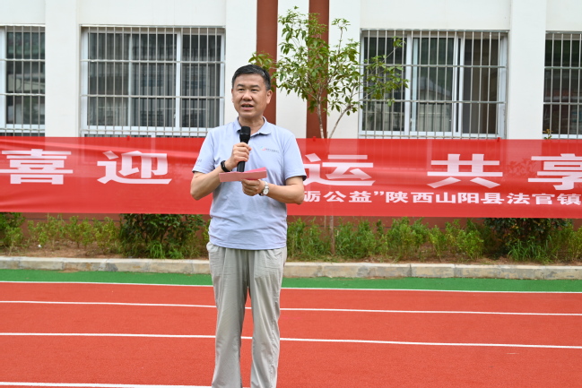 为迎接全运会,传承体育精神,7月22日下午,一场以“喜迎全运,共享健康”为主题的趣味运动会在法官镇中心小学正式开幕。南京励志阳光心汇心公益基金会秘书长韦宇群,业务中心总监助理宋佩瑶,阳光校园部负责人张卓,业务中心宣传专员顾恺丽,山阳县团委书记戴明峰,山阳县发改局钱磊副局长,山阳县教体育潘炳林主任,山阳县法官镇副镇长任妍,法官镇中学小学校长余昌军、副校长吴盛发以及beat365唯一官方网站直属党支部副书记谢军出席活动。