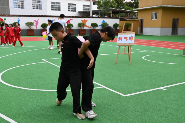 班会课后,南京励志阳光心汇心公益基金会秘书长韦宇群老师宣布运动会开幕。活动中融合迎面接力、两人三足、乒乓球接力、袋鼠赛跑、夹气球、接住宝藏六项趣味运动项目。赛场上,同学们将班会课上感悟的奋斗精神融入每一个动作,搏砺公益团队的成员们在场为孩子们加油鼓劲,场边的加油声、欢呼声与笑声交织成最动人的乐章。